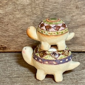 チャームポイントはおそろいの甲羅模様です。細かくおしゃれに施しました。